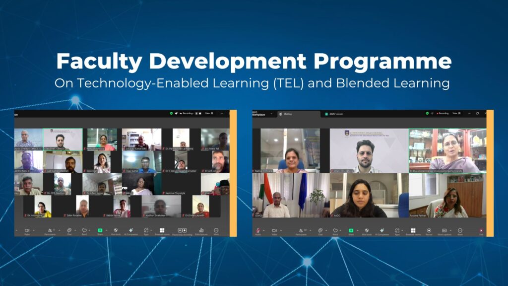 The Commonwealth Educational Media Centre for Asia (COL-CEMCA) and the Academic and Administrative Development Centre of Avinashilingam Institute for Home Science and Higher Education for Women (AVINUTY), Coimbatore, recently hosted a five-day online Faculty Development Programme (FDP) from 18–22 August 2025, focused on Technology-Enabled Learning (TEL) and Blended Learning and was attended by 100 faculty members from higher education institutions in India and abroad.
