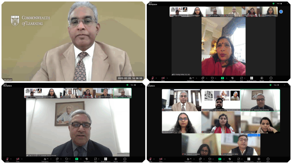 The Commonwealth Educational Media Centre for Asia (COL-CEMCA), Commonwealth of Learning’s regional centre in Asia, collaborated with the Association of Indian Universities (AIU) and Apeejay Stya University (ASU), Haryana, India, to organise an Online Faculty Development Programme (FDP) from 20 to 25 February 2025, focusing on empowering educators in Technology-Enabled Learning (TEL) and Blended Learning (BL). The event, hosted by AIU’s Academic and Administrative Development Centre (AADC) at ASU, aims to equip educators with the skills and knowledge necessary to navigate the evolving landscape of higher education in the digital age.