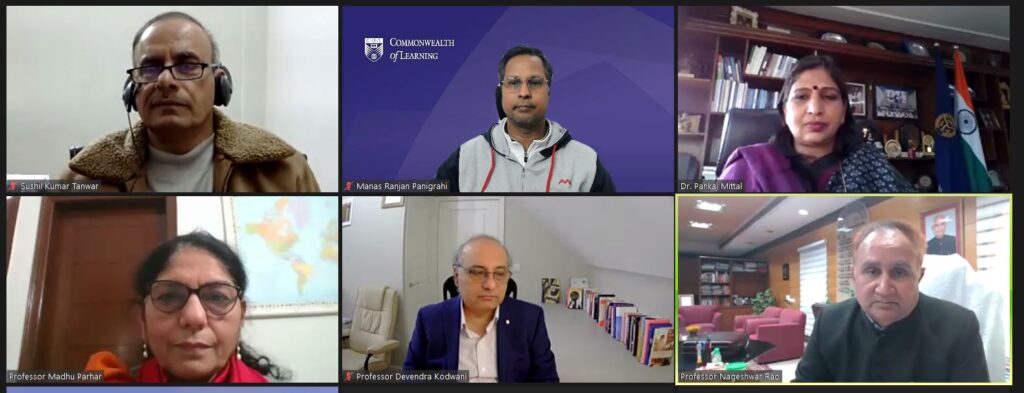 The webinar commenced with an introduction and background by Dr. Shiffon Chatterjee, Senior Programme Officer, CEMCA. Professor Madhu Parhar, Director CEMCA, was then invited for the Welcome Address and release of the CEMCA “Handbook on Online Education in Commonwealth Asia” edited by Dr. Manas Ranjan Panigrahi, Senior Programme Officer, CEMCA and Dr. Phalachandra Bhandigadi, who has served as Professor of Education at Wawasan Open University Penang, Malaysia, and NCERT, India.