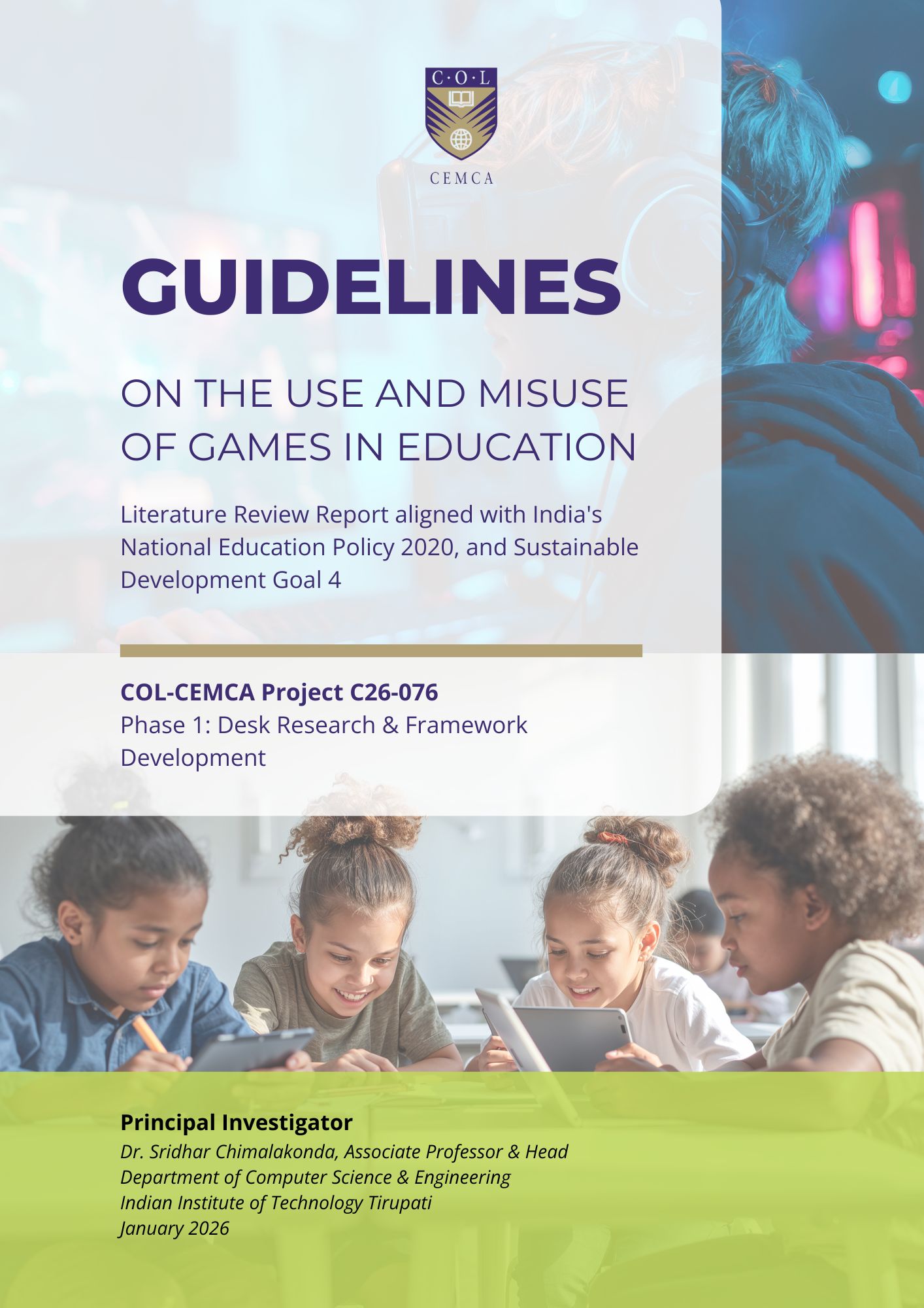 by Dr. Sridhar Chimalakonda, Associate Professor & Head, Department of Computer Science & Engineering Indian Institute of Technology Tirupati, on behalf of COL-CEMCA