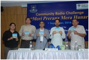 Award Ceremony of CEMCA- NSDC CR Challenge “Meri Prerana Mera Hunar” on 1 September 2016New Delhi, September 2 2016: Commonwealth Media Centre for ASIA, along with National Skill Development Corporation organised a Community Radio Challenge, Meri Prerana Mera Hunar, to showcase the best Skilling story of communities. An award function for the same was held in India International Centre, New Delhi on 1st September 2016, to honour the 11 winners from the 55 entries that had been submitted by 36 Radio stations from all over India. The programme, which was anchored by Ms. Sanjogita Mishra, Programme Officer, CEMCA, began as she welcomed everyone to the ceremony and requested Dr. Shahid Rasool, Director, CEMCA to escort the chief guest, the guest of honour and the chairman of the jury to the dais.