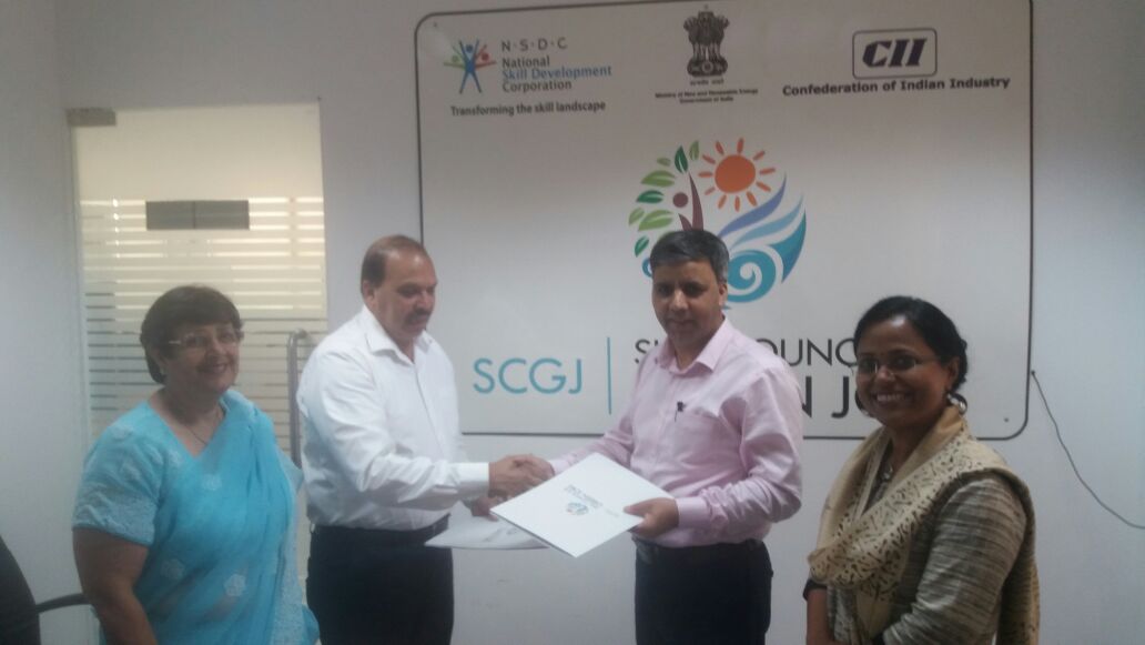 New Delhi, July 26, 2016: in a significant development, CEMCA signed a memorandum of understanding (MOU) with sector skill council for green jobs, on July 26, 2016. The MOU is for an active collaboration, between the two organisations, for the coming 3 years to facilitate training of youth in the renewable energy sector for job roles related to solar, wind and solid waste management. This is a growing sector and needs about 10 million skilled human resources in the coming 5 years.
