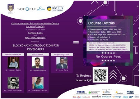 Anticipating the need of future technology to be embedded in skilling curriculum of youths, Commonwealth Educational Media Centre for Asia (CEMCA) collaborated with Amity University, Noida to develop and launch free online course on blockchain technology foundation for students and job aspirants.