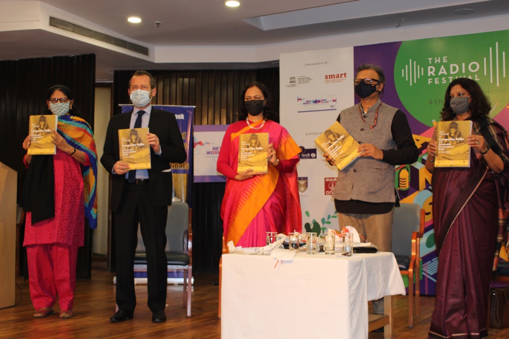Ms Neerja Shekhar Additional Secretary, MIB, Mr Shashi Shekhar Vempati CEO - Prasar Bharati, Mr Eric Falt, Director – UNESCO New Delhi, Prof. Madhu Parhar Director- CEMCA and Ms Archana Kapoor Founder TRF/ SMART graced the occasion and launched the Handbook.