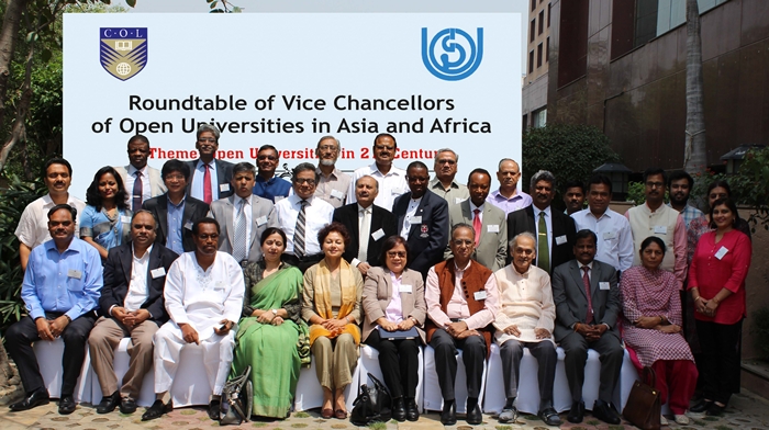 New Delhi, April 24, 2019: With the support of Ministry of Human Resource Development (MHRD) Govt. of India, Commonwealth of Learning (COL) collaborated with Indira Gandhi National Open University (IGNOU) to organise a two-day roundtable of Vice Chancellors of Open Universities in Asia and Africa from 23 to 24 April 2019 in New Delhi, India. Nineteen Vice Chancellors from eight countries including Bangladesh, Botswana, India, Malaysia, Nigeria, South Africa, Sri Lanka and Tanzania were in attendance.